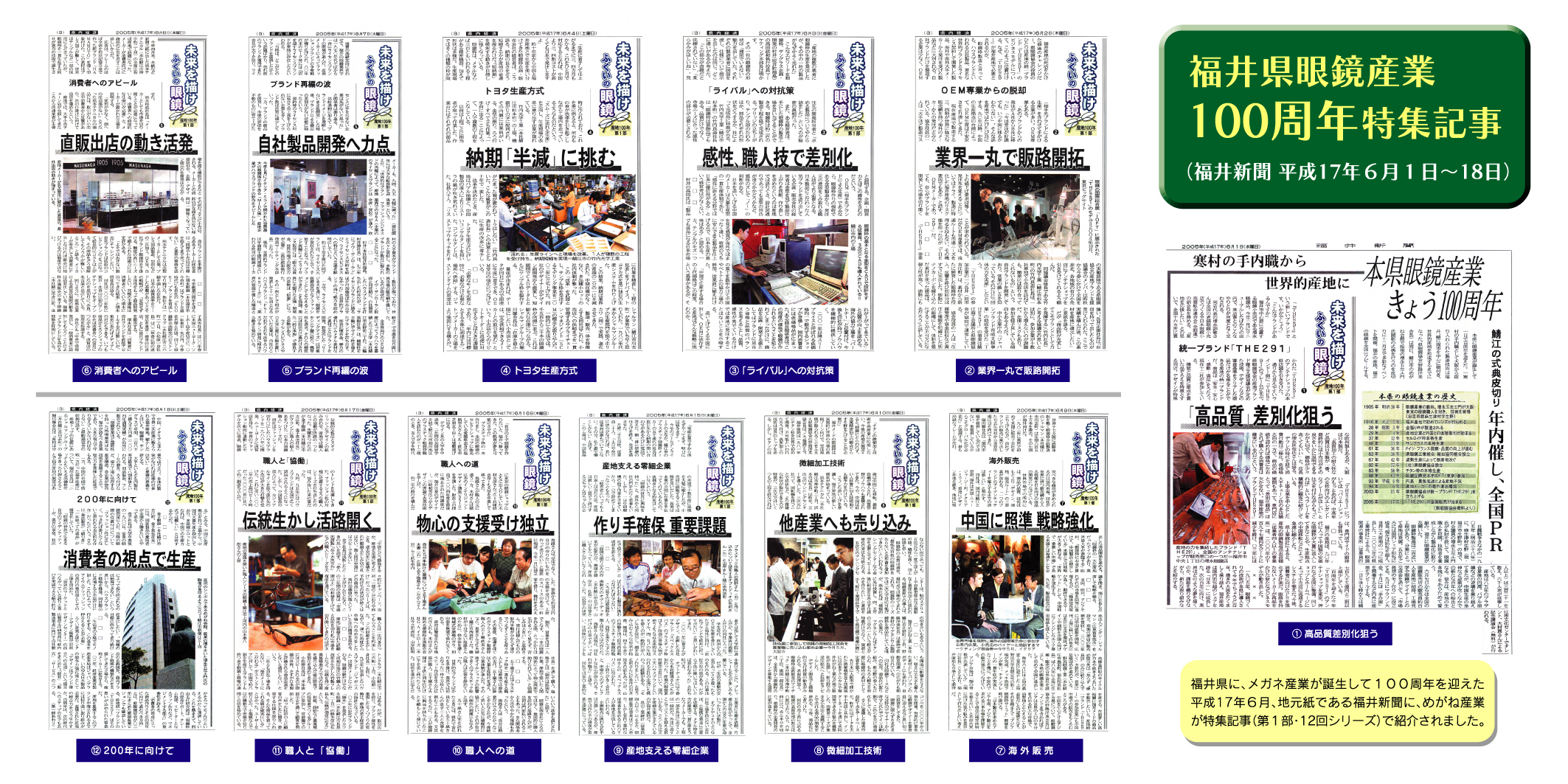 福井県眼鏡産業100周年特集記事(福井新聞平成17年6月1日~18日)(JPG画像)